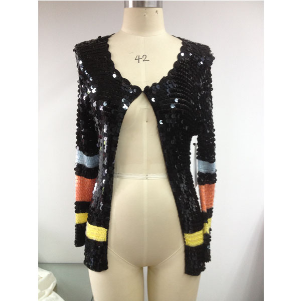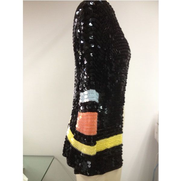 产品号:T001-3珠片上衣服装加工 可选颜色:图片色 可选尺码:SX、S、M、L 适合季节:秋季 风格:only 描述:无数黑色的珠片连接而成,犹如漫天闪耀的繁星,闪闪发光,让你成为人群中亮眼的一抹! |